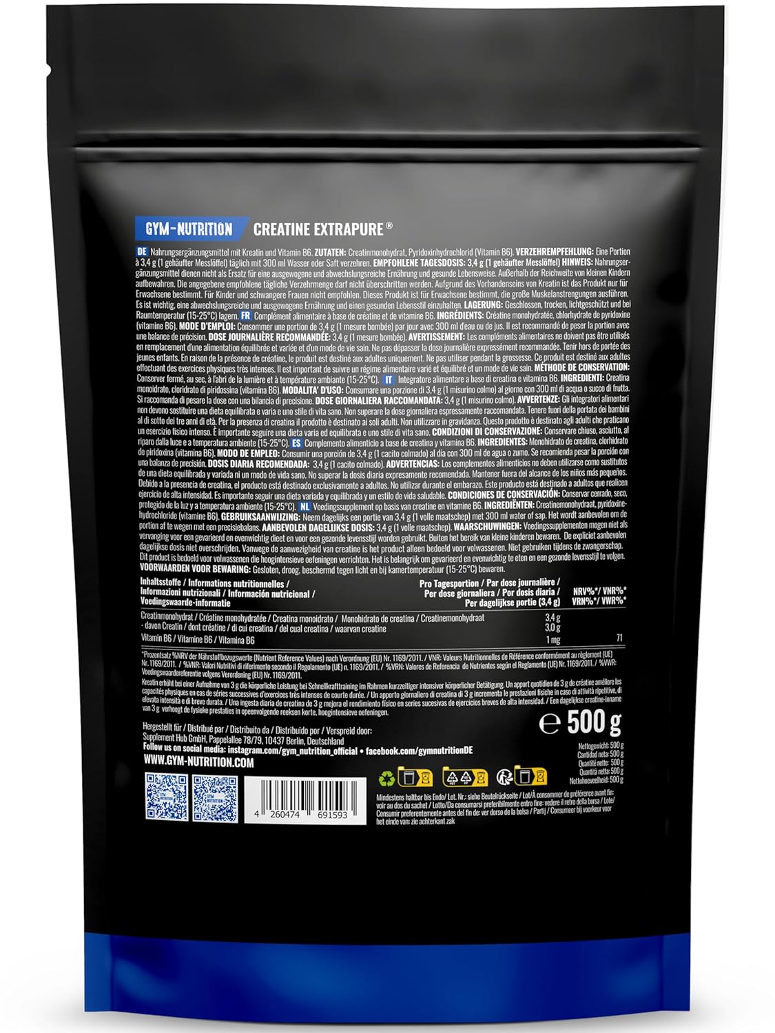 CREATINE (CREATINE) POWDER – Creatine Monohydrate Powder – Ultra High Purity Without Additives – Laboratory Tested – Storage Bag – Vegan