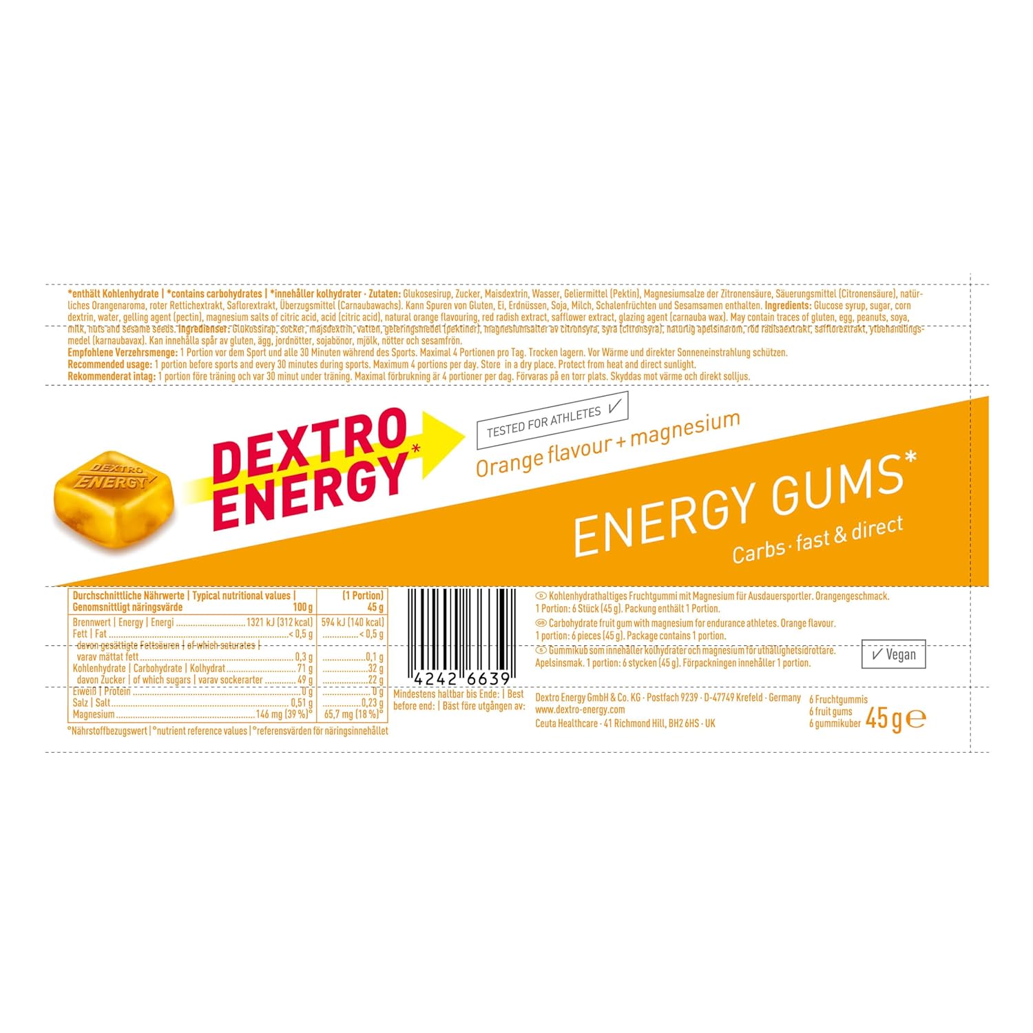 HomeSportnahrungDEXTRO ENERGY Gums Orange + Magnesium – 8 x 45 g (Pack of 8) – Fruit Gums with Quickly Available Carbohydrates and Additive, for Intensive Workouts, with Electrolyte Additive,…