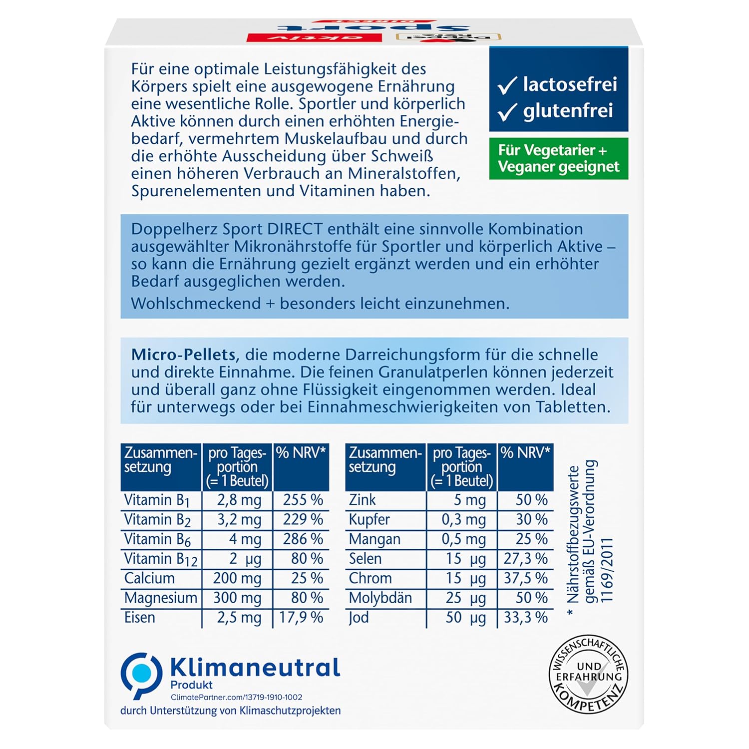 HomeSportnahrungDoppelherz Sport Direct, dietary supplement with B vitamins and minerals for athletes and physically active people, orange flavour, 20 portions (20 x micro pellets = 40 g)