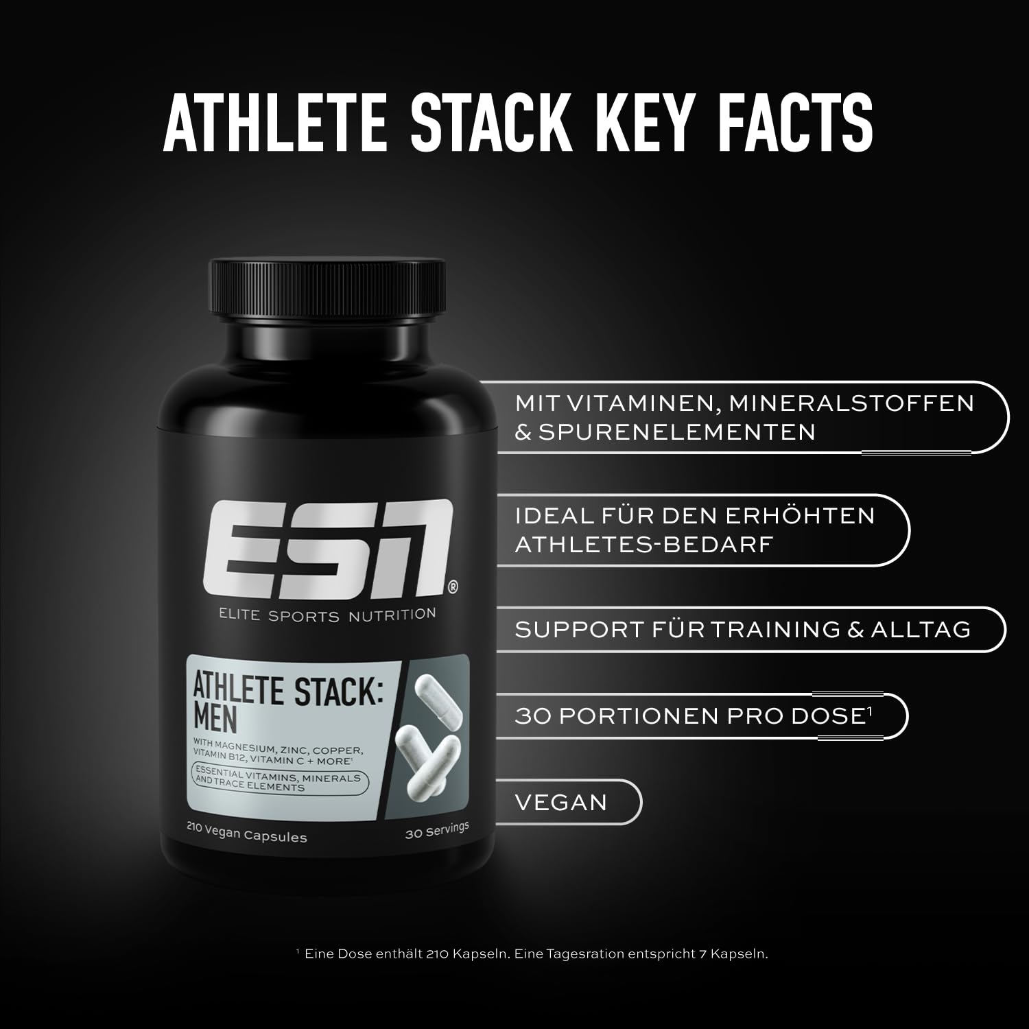 HomeSportnahrungESN Athlete Stack Men 2.0, 210 Capsules, All Essential Vitamins and Minerals, Vegan, Made in Germany