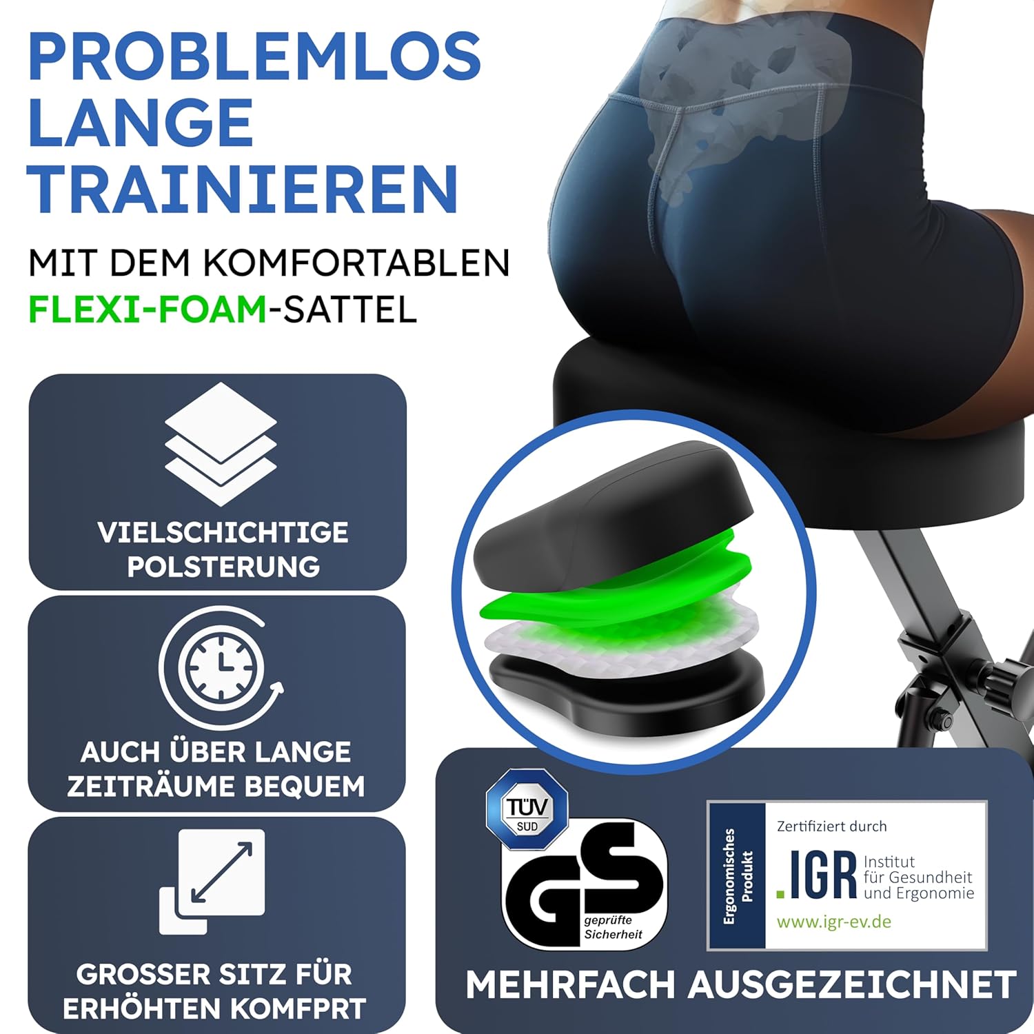 HELDENWERK Flexible Foam Exercise Bike Folding Set Extra Comfortable & Quiet up to 150 kg Load Capacity Ergometer Bicycle, Home Trainer Bicycle, Ergometer Exercise Bike Seniors,…