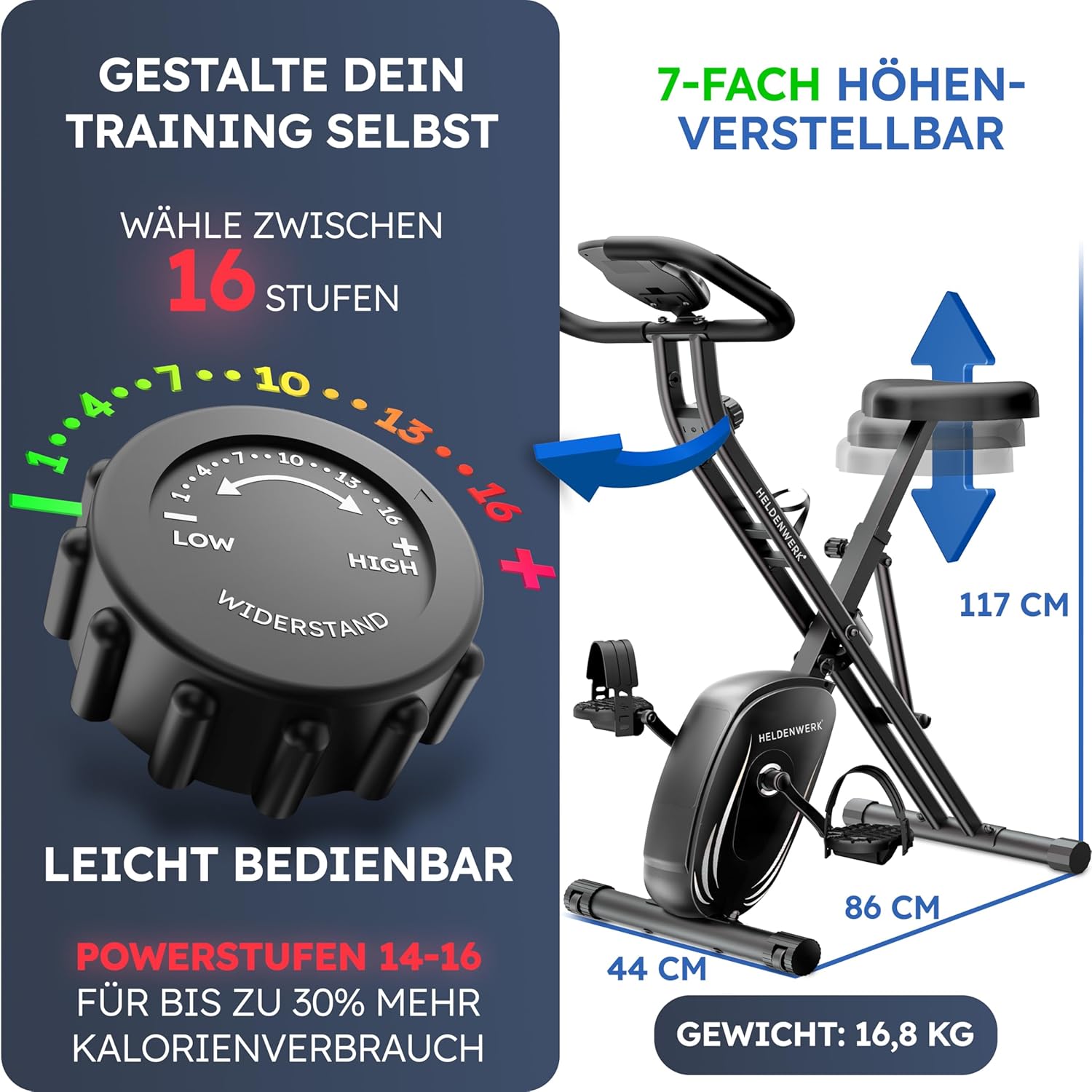 HomeSportgeräteHELDENWERK Flexible Foam Exercise Bike Folding Set Extra Comfortable & Quiet up to 150 kg Load Capacity Ergometer Bicycle, Home Trainer Bicycle, Ergometer Exercise Bike Seniors,…