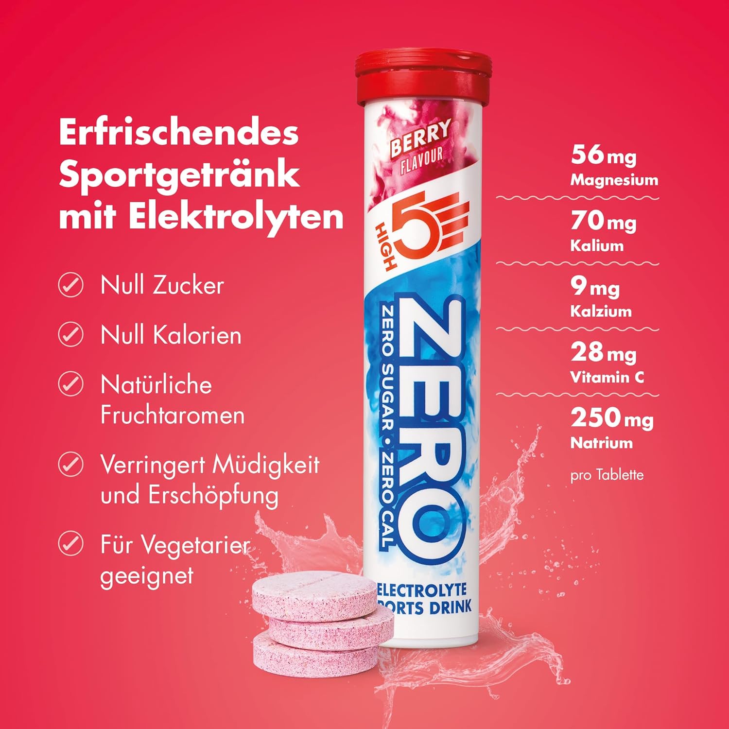 HIGH5 Zero Electrolytes Without Sugar – Hydration Helper, For More Performance and Wellbeing – Potassium Calcium Magnesium Effervescent Tablets – Berry, 40 Electrolyte Tablets…