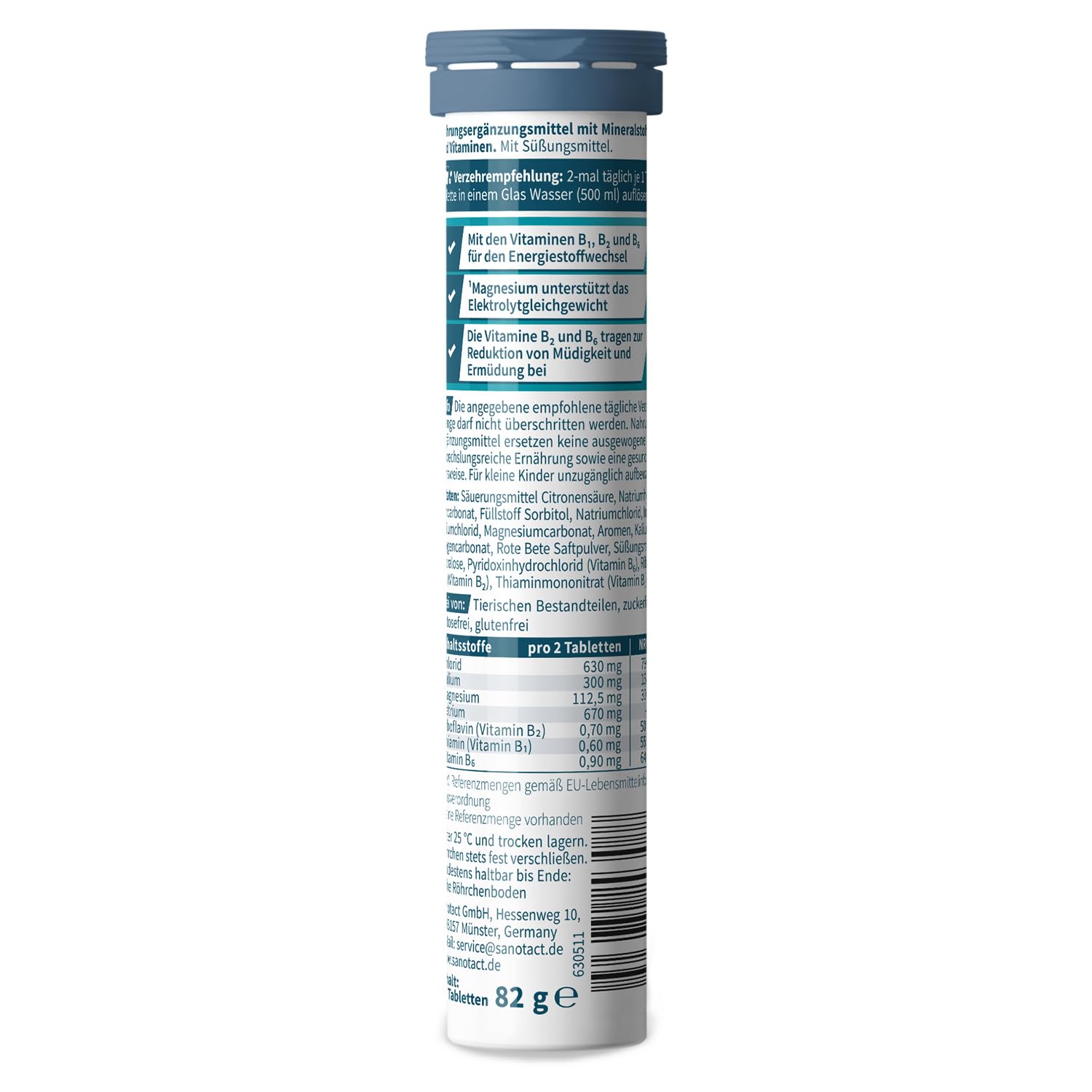 sanotact Elektrolyte Aktiv – 20 Brausetabletten Elektrolyt Mit Magnesium, Natrium, Kalium Kalorienfrei, zuckerfrei, vegan Limetten-Grapefruit-Geschmack