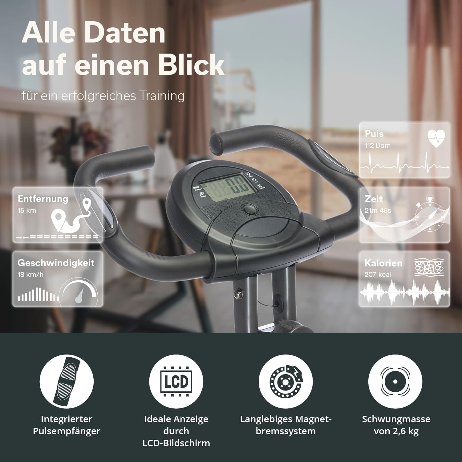 HomeSportgeräteSkandika Foldaway X-1000 Fitness Bike, Exercise Bike, X-Bike, F-Bike, Foldable with Hand Pulse Sensors, 8-Level Magnetic Resistance, LCD Display, 130 kg Max. Weight Load